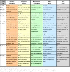 • Quality of the glove formulation and manufacturing process