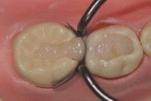 Additional studies should be conducted to confirm these results over a longer term. In order to improve the clinical longevity of restorations, two elements in particular should be considered: cavity preparation and the use of a coating. Soft cavities with rounded angles are sought to prioritise saving tissue that, however, present sufficient base to favour the occurrence secondary caries, in particular on primary deciduous molars, which have a strong cervical constriction (Fig. 3).