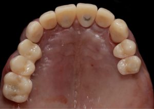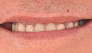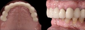 The goal of the treatment was to rehabilitate the upper arch with a combination of crowns and implant retained restorations to provide the patient with a fixed solution.