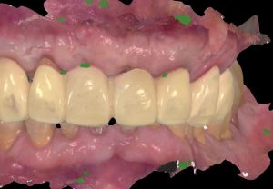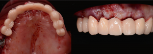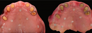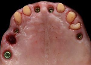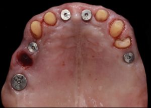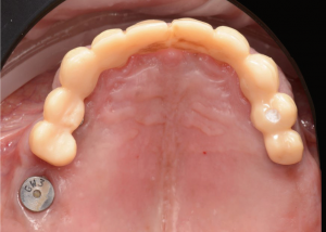 Immediate post-operative following guided implant surgery and temporary cementation of the provisional fixed bridge printed from the GC Temp PRINT (medium shade). Fig.8
