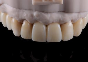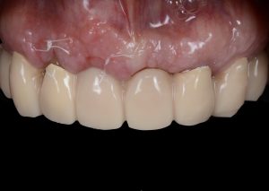 Completed provisional crowns, implant retained crowns and bridge, characterized with OPTIGLAZE color (GC) – Dental technician: Brad Groblar, Oral Dynamics, New Zealand. Fig. 14