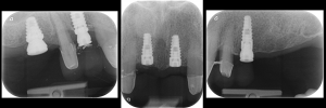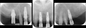 Periapical radiographs to verify the seat of the implant- retained provisional restorations. Fig. 18
